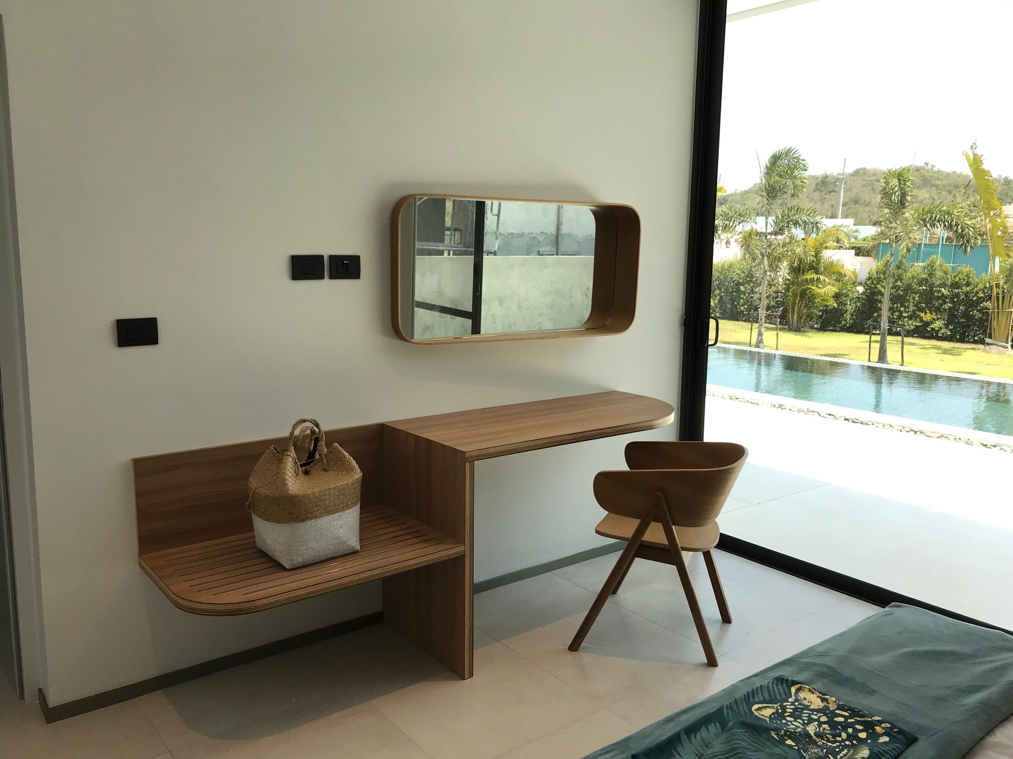 Walnut Desk (only modification, cutting and fix to the wall) 8’500 THB
